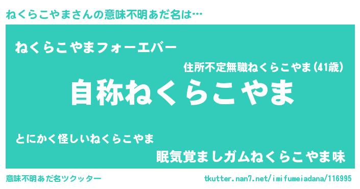 | 男性向けラノベタイトル風あだ名 | 『Re:ねくらこやまから始める異世界生活』 |