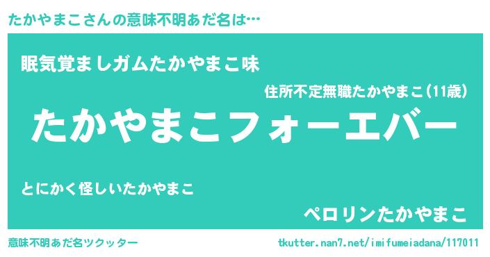 | 欧米人風あだ名 | 『たかやまこクリステル』 |