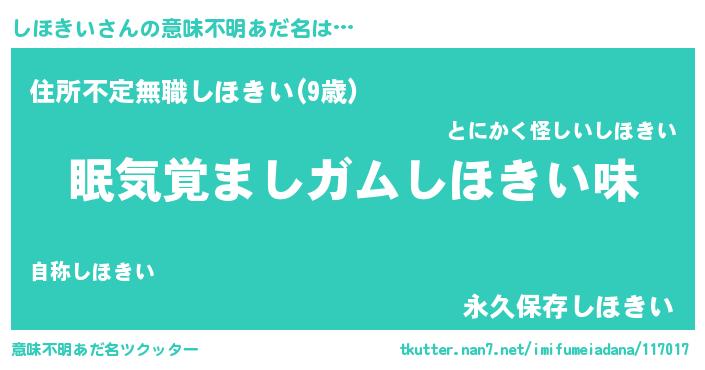 | ヘコむあだ名 | 『しほきい(笑)』『しほを』 |
