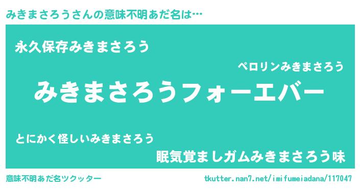 | ファンタジー風あだ名 | 『エターナルミキマサロウー』 |