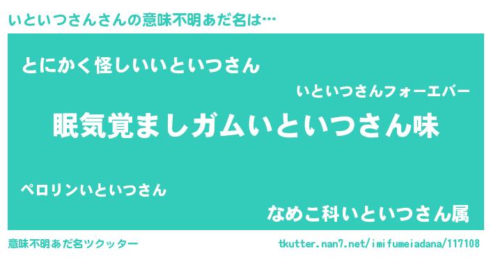 | ヒーロー風カッコイイあだ名 | 『正義の使者いといつさん』 |