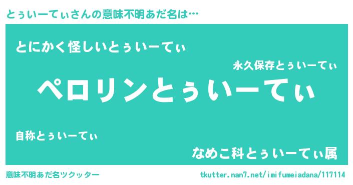 | 胡散臭い通販商品みたいなあだ名 | 『億万長者になれる水晶球…その名も「とぅいーてぃ」』 |