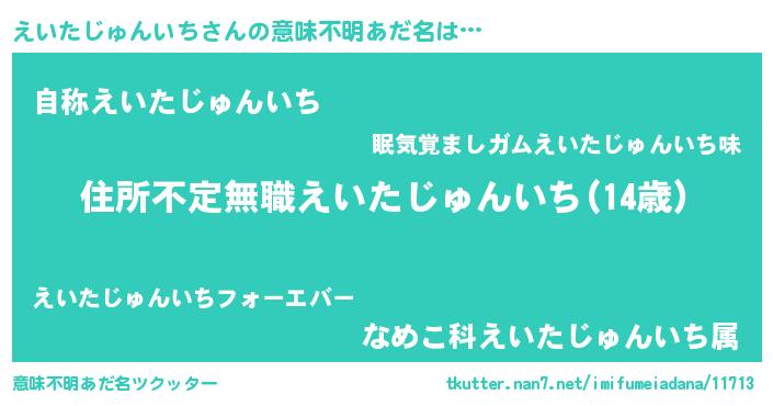 | 男性向けラノベタイトル風あだ名 | 『この素晴らしい世界にえいたじゅんいちを!』 |
