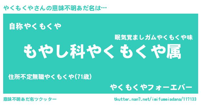 | 欧米人風あだ名 | 『トリンドルやくもくや』 |
