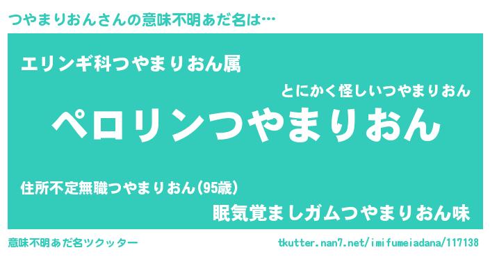 | 男性向けラノベタイトル風あだ名 | 『つやまりおんの憂鬱』 |