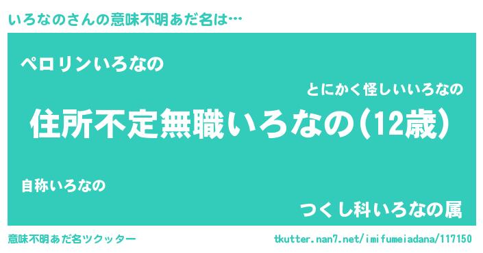 | 男性向けラノベタイトル風あだ名 | 『魔弾の王といろなの』『いろなのの憂鬱』 |