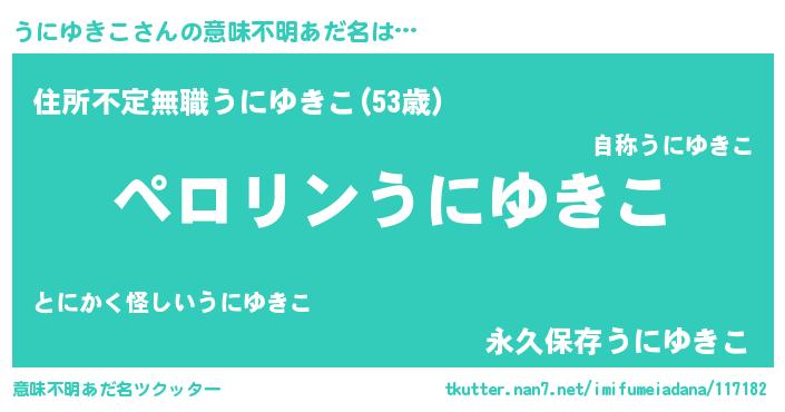 | 男性向けラノベタイトル風あだ名 | 『うにゆきこの憂鬱』『緋弾のウニユキコ』 |