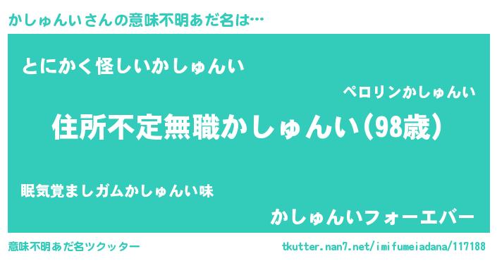 | 女子向けラノベタイトル風あだ名 | 『悪役かしゅんいに転生したようですが、知った事ではありません』 |