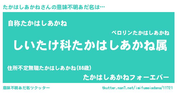 | 男性向けラノベタイトル風あだ名 | 『タカハシアカネスレイヤー』 |