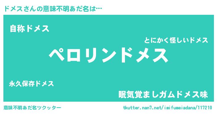 | 男性向けラノベタイトル風あだ名 | 『緋弾のドメス』『はたらくドメスさま!』 |