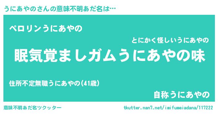 | ヒーロー風カッコイイあだ名 | 『愛の使者うにあやの』『炎刃騎士ウニ』 |