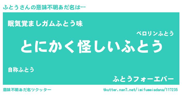 | ヒーロー風カッコイイあだ名 | 『幻影騎士フト』『正義の使者ふとう』 |