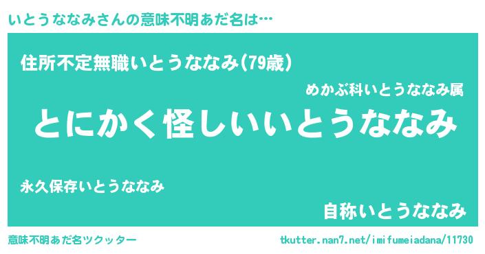 | 女子向けラノベタイトル風あだ名 | 『いとうななみは平凡を望む』 |