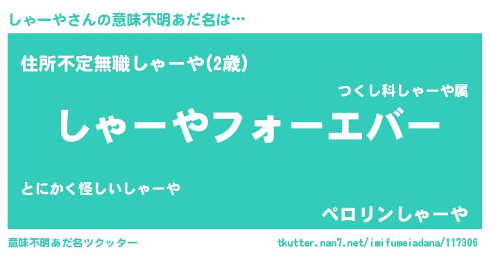 | 欧米人風あだ名 | 『しゃーやクリステル』 |