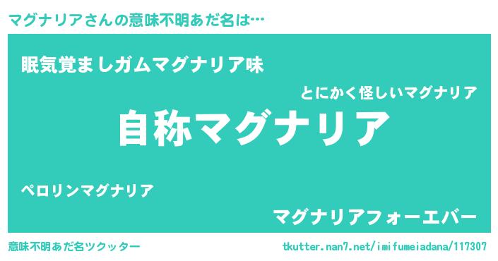 | 男性向けラノベタイトル風あだ名 | 『うちのマグナリアが世界を掌握している!』 |
