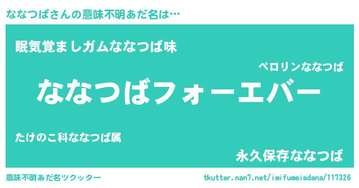 | ヘコむあだ名 | 『牛乳』『ななつば(笑)』『ななもー』 |