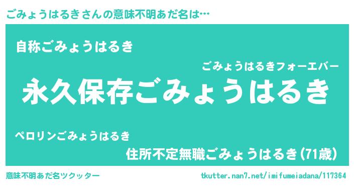 | 伝説のあだ名 | 『古文書に記された勇者ごみょうはるき』 |