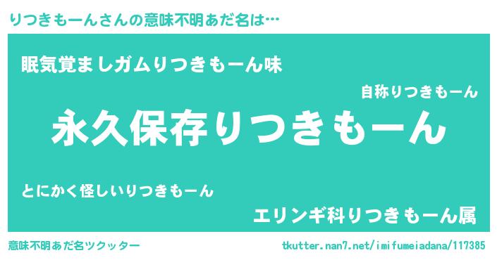| 男性向けラノベタイトル風あだ名 | 『りつきもーんという概念が存在しない退屈な世界 』 |