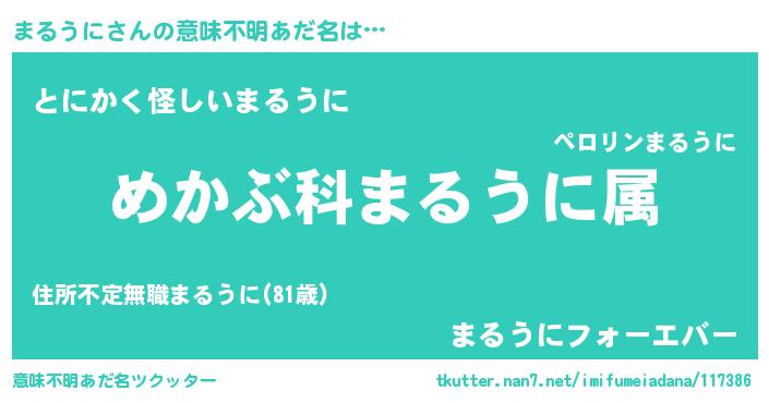 | 胡散臭い通販商品みたいなあだ名 | 『信頼と実績のサプリメント…その名も「まるうに」』 |