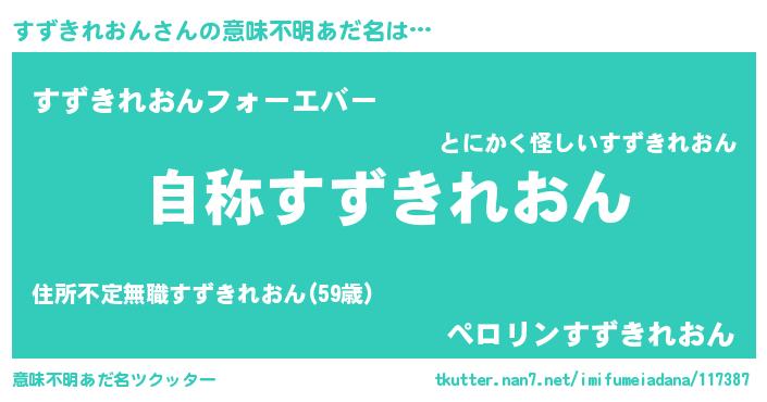 | 男性向けラノベタイトル風あだ名 | 『Re:すずきれおんから始める異世界生活』 |