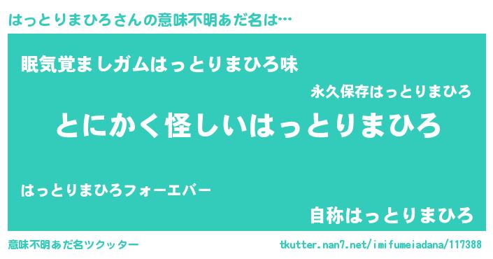 | ヘコむあだ名 | 『はっっぺ』『はっとりまひろ(笑)』 |