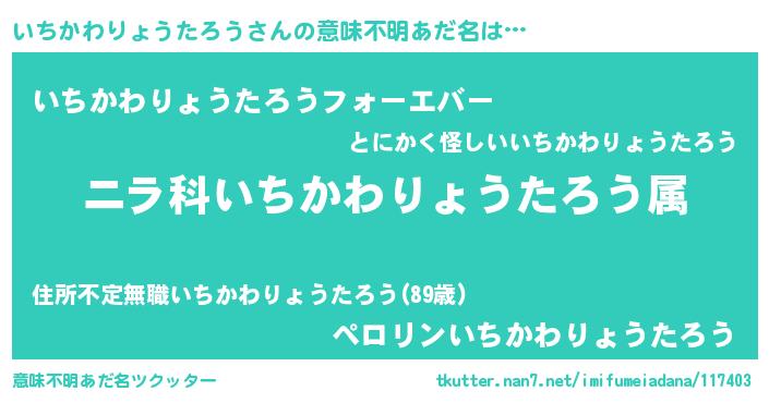 | 欧米人風あだ名 | 『アンジェラ・いちかわりょうたろう』 |