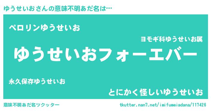 | ファンタジー風あだ名 | 『エターナルユウセイオー』『ユウフェル』 |