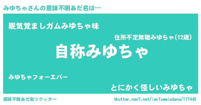 | ヘコむあだ名 | 『みゆを』『豆乳』『みゆっふぃ~』 |
