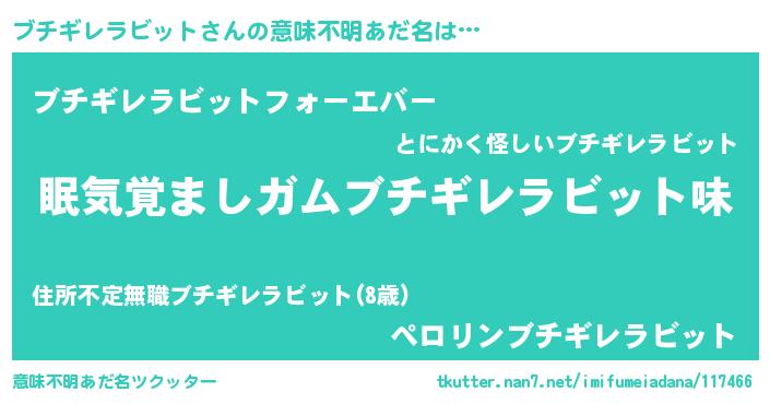 | 欧米人風あだ名 | 『ダニエルブチギレラビット』 |