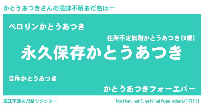 | 胡散臭い通販商品みたいなあだ名 | 『絶対に幸福をもたらす水素水…その名も「かとうあつき」』 |