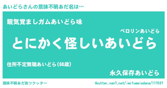 | ヘコむあだ名 | 『あいっちょ』『あいどら(遠い目)』 |