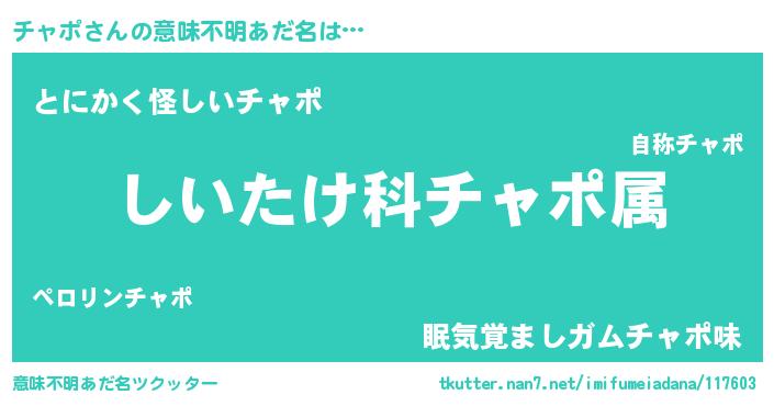 | 男性向けラノベタイトル風あだ名 | 『チャポスレイヤー』 |