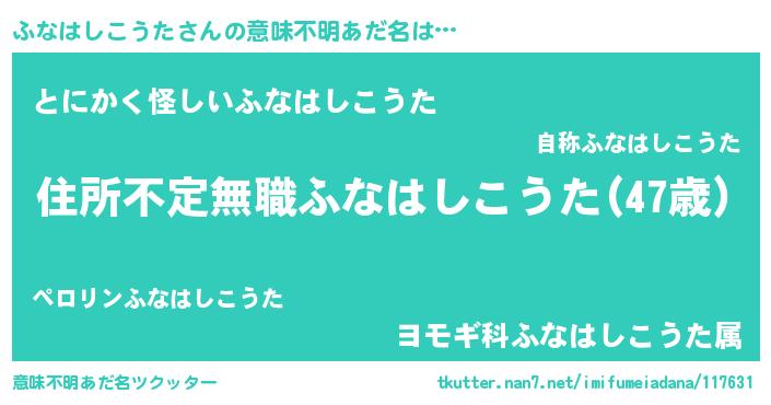 | 男性向けラノベタイトル風あだ名 | 『この素晴らしい世界にふなはしこうたを!』 |