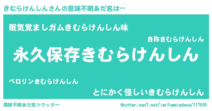 | 男性向けラノベタイトル風あだ名 | 『きむらけんしんという概念が存在しない退屈な世界 』 |