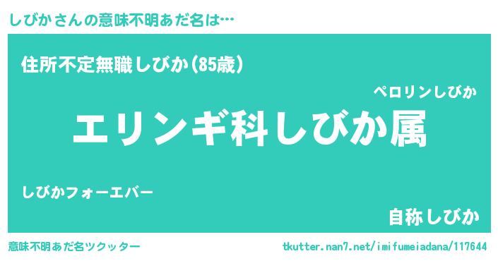 | 伝説のあだ名 | 『伝説のスナイパーしびか』 |