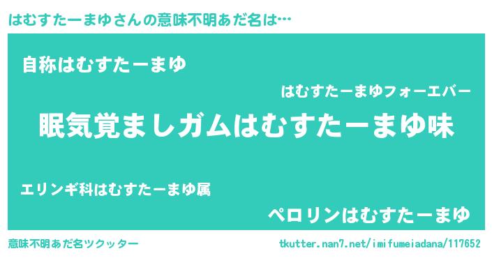 | 胡散臭い通販商品みたいなあだ名 | 『お金では代えられないイリジウム磁石…その名も「はむすたーまゆ」』 |