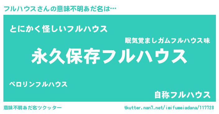 | ヒーロー風カッコイイあだ名 | 『ネオフルハウス』『炎刃騎士フル』 |