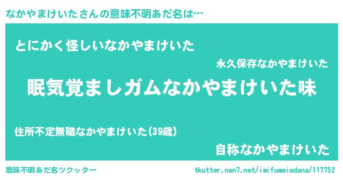 | ヘコむあだ名 | 『なかっ子』『なかやまけいた(苦笑)』 |