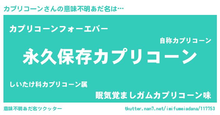 | 女子向けラノベタイトル風あだ名 | 『異世界で失敗しない100のカプリコーン』 |