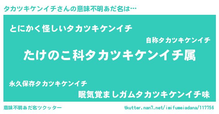 | 男性向けラノベタイトル風あだ名 | 『転生したらタカツキケンイチだった件』 |