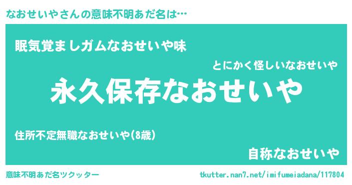 | 胡散臭い通販商品みたいなあだ名 | 『絶対に幸福をもたらす健康食品…その名も「なおせいや」』 |