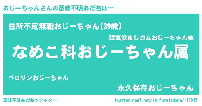 | 男性向けラノベタイトル風あだ名 | 『転生したらおじーちゃんだった件』 |