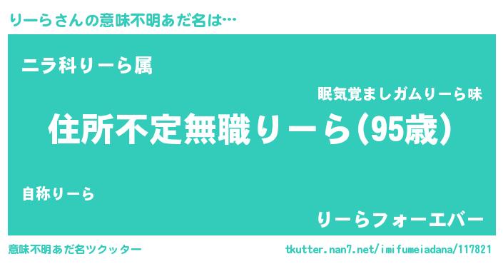 | 肩書あだ名 | 『りーら教官』『りーら大将』 |