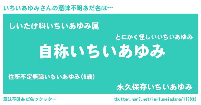 | 男性向けラノベタイトル風あだ名 | 『Re:いちいあゆみから始める異世界生活』 |