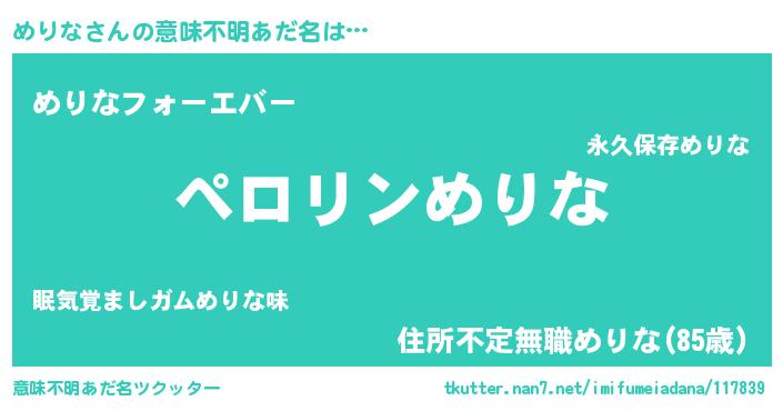 | ファンタジー風あだ名 | 『メリフェル』『エターナルメリナー』 |