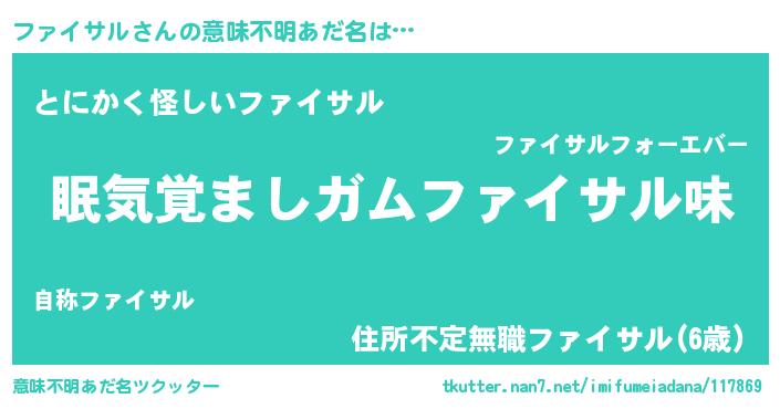 | ポケモン風あだ名 | 『フックウザ』『ヒファイサル』 |