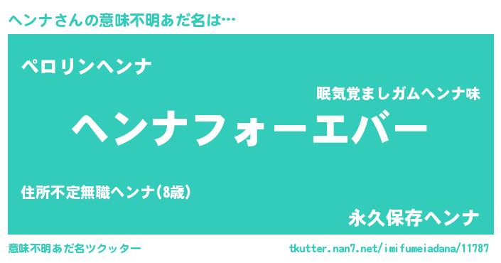 | ヒーロー風カッコイイあだ名 | 『ウルトラヘンナマン』『スーパーヘンナ』 |