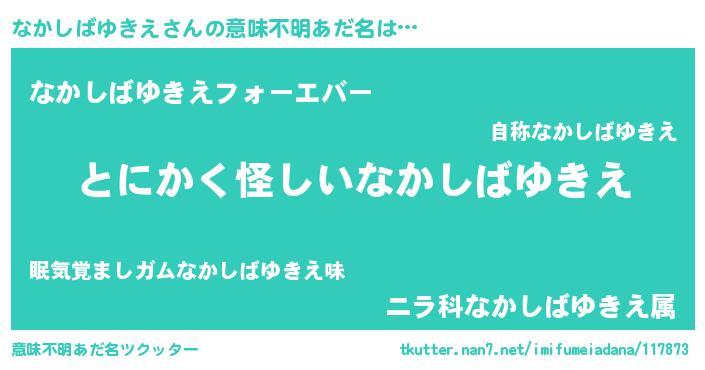 | ポケモン風あだ名 | 『ヒナカシバユキエ』『ナカシダネ』 |