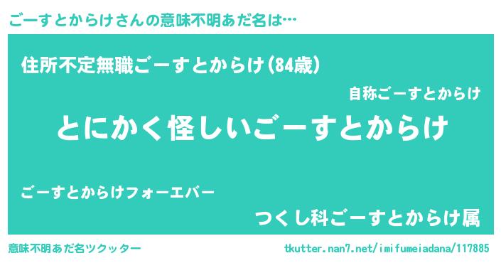 | 女子向けラノベタイトル風あだ名 | 『ごーすとからけは平凡を望む』 |