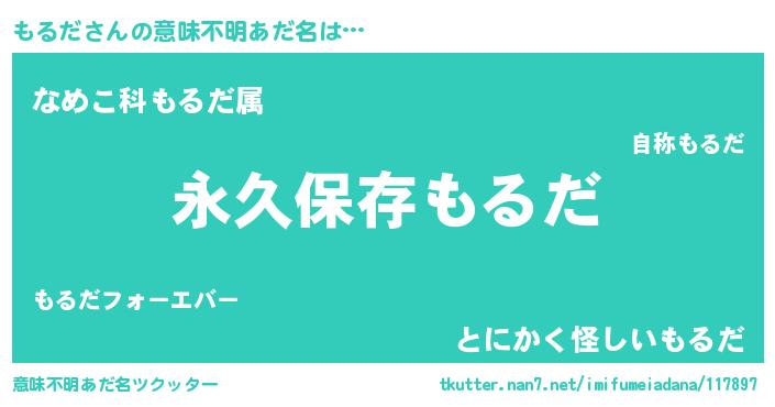 | 男性向けラノベタイトル風あだ名 | 『もるだという概念が存在しない退屈な世界 』 |